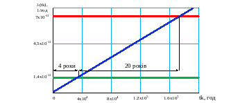 Графік залежності для мажоритарної структури 2 з 3 та інтенсивністю відмови одного каналу 10-8 представлений на рисунку 4.13.