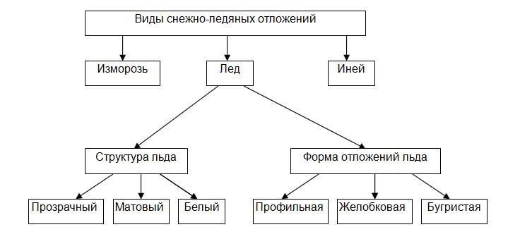 При обледенении самолетов и вертолетов применяют следующую классификацию снежно-ледяных отложений на поверхности ВС (рис. 4.7).