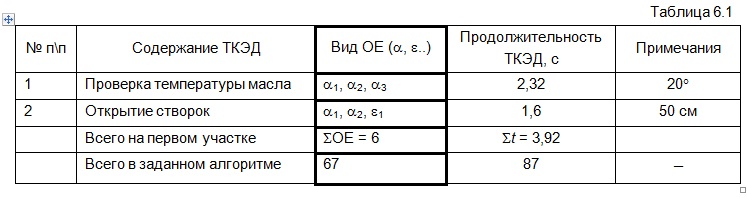 Для каждого члена экипажа составляется отдельный алгоритм и заполняется соответствующая таблица. Каждый ТКЭД, приведенный в табл. 6.1, разворачивается в последовательность оперативных единиц.