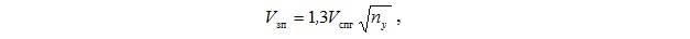 Учитывая, что перегрузка при заходе на посадку не должна превышать перегрузку при крене в 25°, т. е. ny = 1,103, получим более точное выражение для скорости захода на посадку: