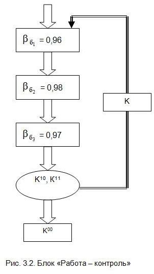 Допустим, К10 = 0,11, К11 = 0,89, К00 = 0,92, тогда вероятность безошибочного выполнения блока «Работа - Контроль» будет равна
