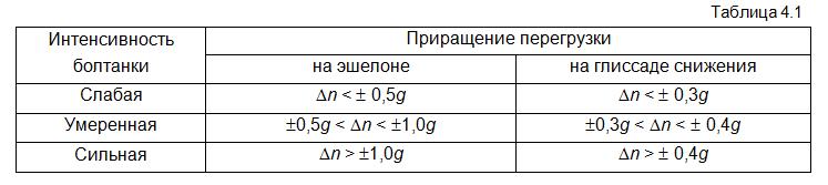 Интенсивность болтанки оценивается приращением перегрузки (табл. 4.1).