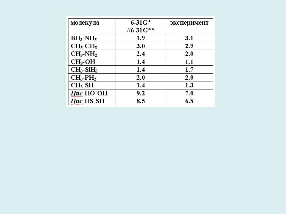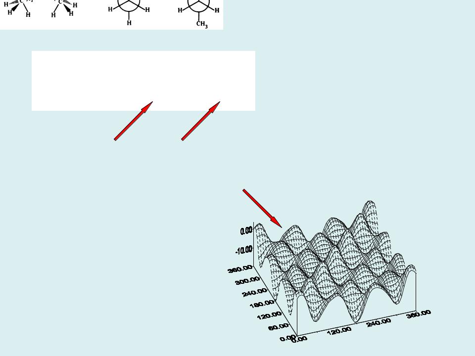 Пример: молекула н-бутана имеет устойчивые гош- и транс- конформеры. Транс-конформер имеет на ППЭ внутреннего вращения более глубокий минимум из-за меньшего стерического напряжения.