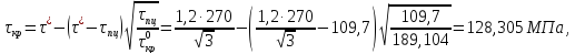 Критическое касательное напряжение выше предела пропорциональности при сдвиге. Принимаем: