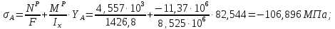 Из полученных значений выбираем наибольшее растягивающее и наибольшее сжимающее напряжения:
