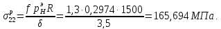 Определим расчётное окружное напряжение в месте стыка обечайки и нижнего днища по формуле:
