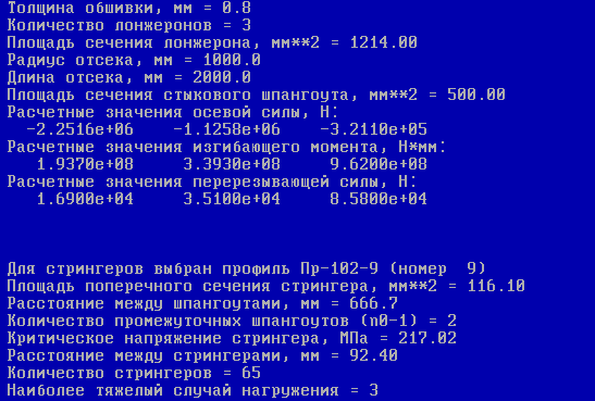 Подбор потребного количества стрингеров негерметичного отсека проводится на ЭВМ с помощью программы OTCEK.EXE. Результаты расчетов приведены на рисунке 4.2.