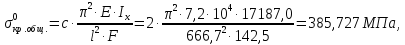 Критическое напряжение общей потери устойчивости стрингера в предположении о справедливости закона Гука будет равно: