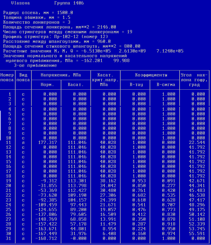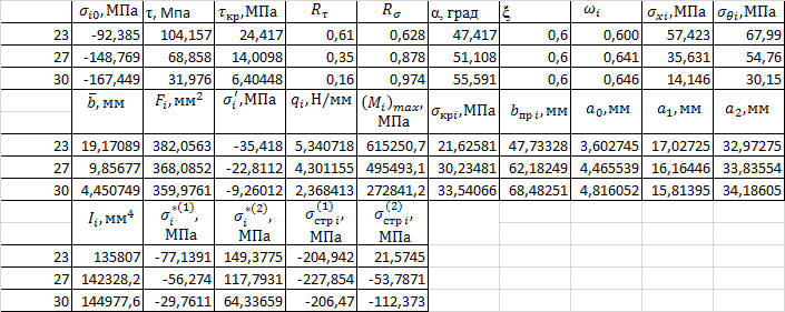 Таблица 2 – Расчёт нормальных и касательных напряжений.
