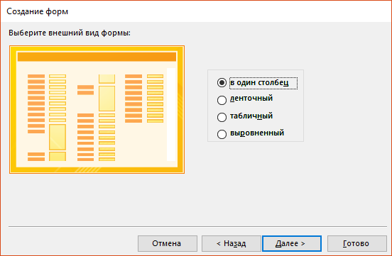Рисунок 1 – Создание формы с помощью автоформы для однотабличного запроса.