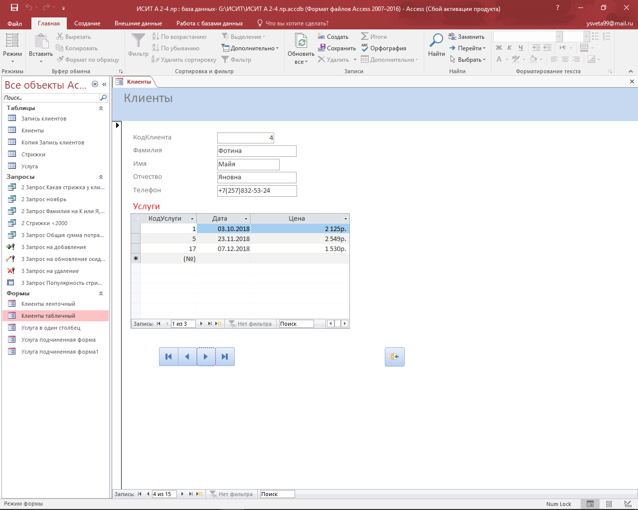 Услуга (Код услуги, Код клиента, Код стрижки, Дата).