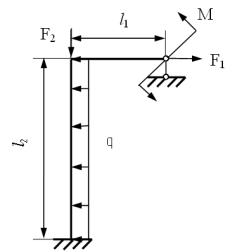 2.Начертить в условном масштабе заданную схему (рис. 1.2), указав все размеры, внешние нагрузки, момент и реакции заделки, а также искомую неизвестную реакцию.
