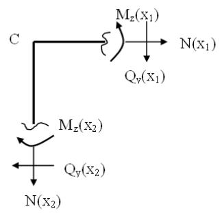 11.1. Вырезаем узел С. Показываем внутренние силовые факторы (рис.