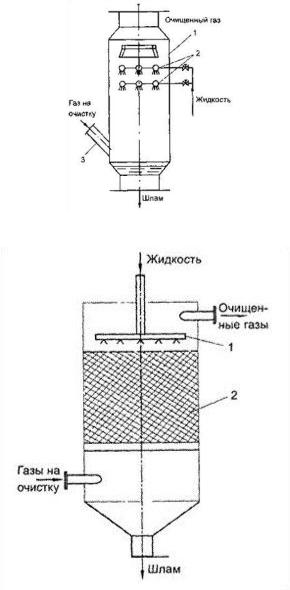 1 — орошающее устройство, 2 — насадка