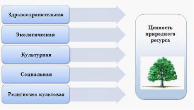 1. Определение экологической, здравоохранительной, социальной, религиознокультовой и иной ценности природных ресурсов (показанных на рисунке), лежит в основе … оценки природных ресурсов 1) экономической 2) внеэкономической 3) естественной 4) антропогенной