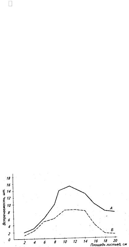 В случае большой выборки строят вариационные кривые встречаемости листьев определенной площади в разных условиях среды.