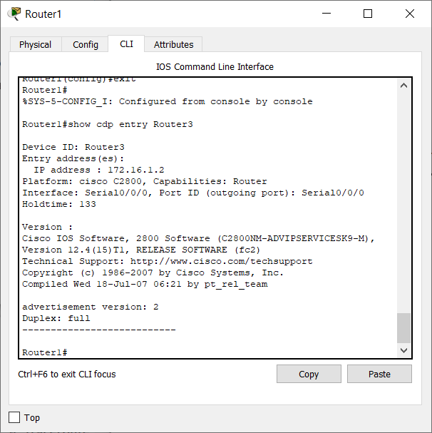 Рисунок 4 – Просмотр информации об устройстве Router1
