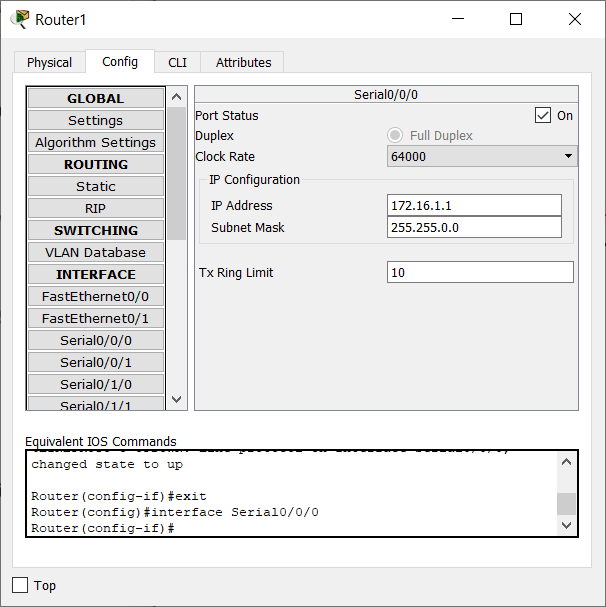 Рисунок 2 – Router1 выполняет функции DCE-устройства