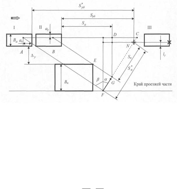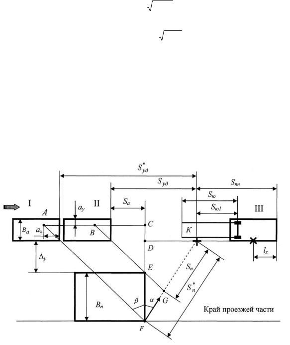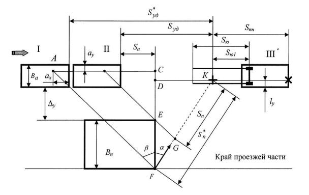 Для данного случая наезда формулы расчета (1), (3), (4) и (6) корректируют согласно схемы дорожно-транспортного происшествия, и они соответственно примут вид
