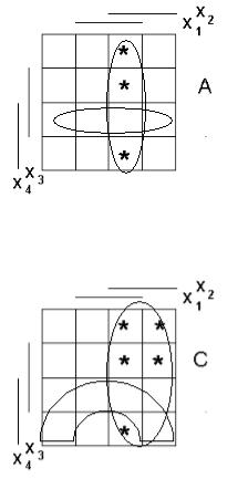 3.Это мы получили первоначальное покрытие множествами допустимых конфигураций булевой функции. Теперь построения интуитивные. Строим дополнительные допустимые конфигурации, стараясь уменьшить число различных допустимых конфигураций.