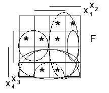Наконец, булева функция может быть представлена дизъюнкцией допустимых конфигураций. Например, F = х2\х3Vх1х3\х4.