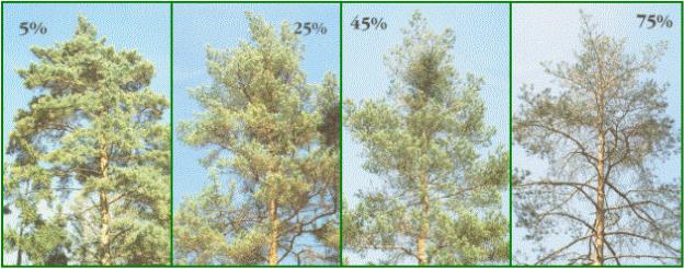 Рис. 1 – Сосна обыкновенная: степень дефолиации крон: 5, 25, 45, 75 %.