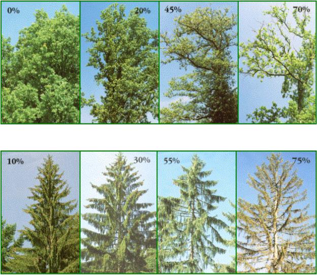 Рис. 3 – Ель обыкновенная: степень дефолиации крон: 10, 30, 55, 75 %.
