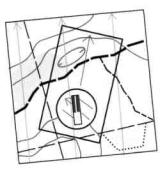 избежать возможной ошибки на 180° при ориентировании карты, следует обратить внимание на то, чтобы северный конец стрелки компаса и ориентация северных стрелок магнитного меридиана на карте совпадали. После завершения процесса ориентирования карты, компас можно убрать, чтобы он не мешал чтению карты.