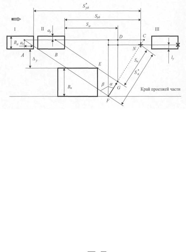 неподвижного препятствия под произвольным углом в попутном движению автомобиля направлении (рис. 5).