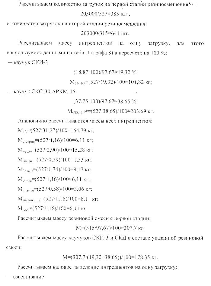 Масса одной загрузки для всех шифров резиновой смеси на первой стадии резиносмешения составляет g=527 кг, на второй стадии резиносмешения составляет g=315 кг.