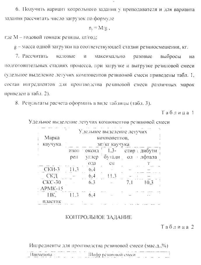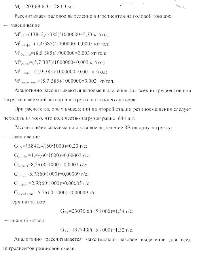 Резулыагы расчега выделения ЗВ при производстве резиновой смеси