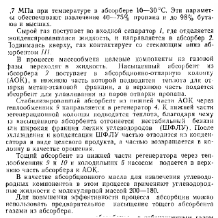 ОПИСАНИЕ: На установку подаются газы и головки ста- билизации с установок АВТ и КР. В качестве продуктов с установки выводятся пропановая, изобутановая, бутановая, изопентановая и пентановая фракции, а также газовый бензин и сухой газ.