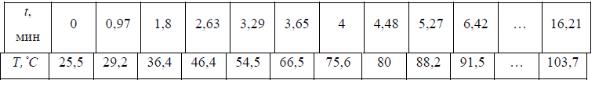 Рис. 7 График зависимости температуры внутреннего слоя от времени протеканияпроцесса