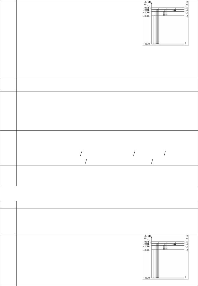 2.На рисунке дана схема энергетических уровней атома водорода, а также условно изображены переходы электрона с одного уровня на другой, сопровождающиеся излучением кванта энергии. В ультрафиолетовой области спектра эти переходы дают серию Лаймана, в видимой области – серию