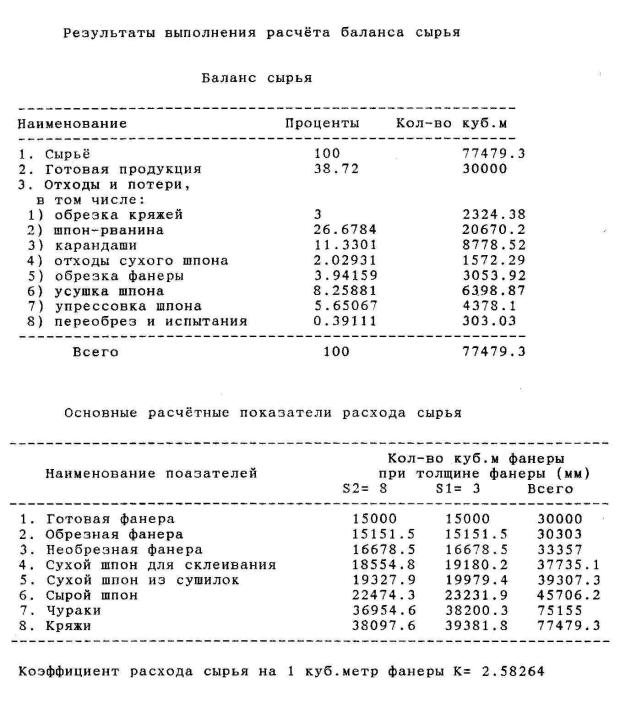 После завершения последнего этапа из оставшегося шпона набираются внутренние слои для фанеры всех толщин и рассчитываются цены набранной фанеры, а также средняя оптово-отпускная цена всей продукции.