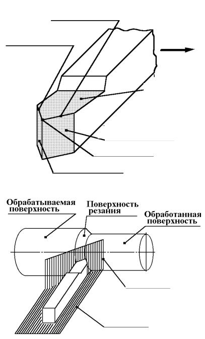 через главную режущую кромку касательно к поверхности резания; основная плоскость, параллельная направлению продольной и поперечной по-