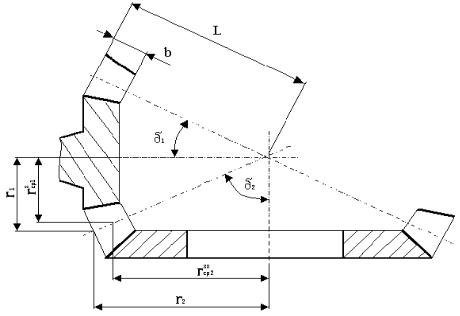 Радиус основания конуса шестерни, м |