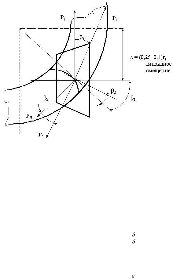 Рис. 5. Схема сил, действующих в гипоидном зацеплении