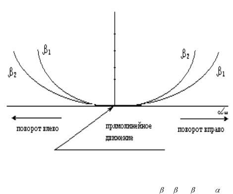 1 и 2 - углы поворота цапф управляемых колес, град.