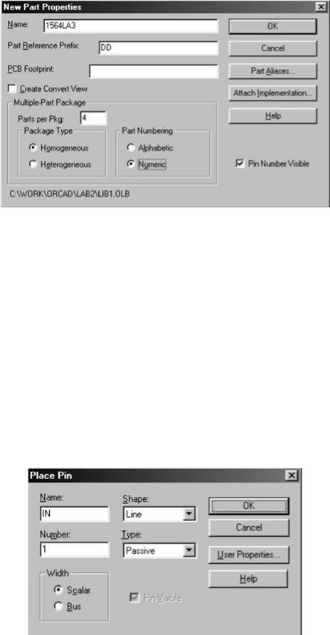 Создание компонентов аналогично созданию символов, для этого в контекстном меню библиотеки или меню Design выбирается команда NewPart. Компоненты могут состоять из нескольких секций, при этом секции могут быть однородные (Homogeneous) и неоднородные (Heterogeneous).