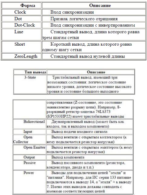В поле Name задается имя вывода, Number - номер вывода, Width – ширина. Свойства Shape и Type описаны в таблицах 2.2 и 2.3.