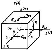 1.Приложено нормальное напряжение в продольном направлении, а также касательное напряжение в направлении, действующее вдоль оси Z на грань куба,