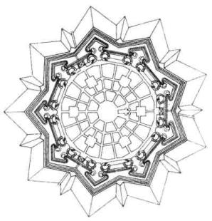 Рис. 5. Проекты идеальных городов: 1) Идеальный город – Витрувий, 1 в. н.э. 2) Идеальный город – Виченцо Скамоцци, начало 18 в. 3) Идеальный город – Джорджо Вазари, 1598г.