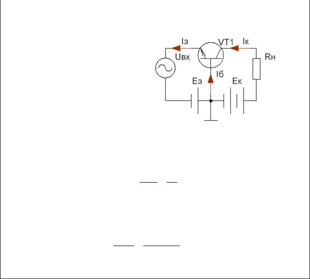 Здесь KI – коэффициент усиления по току, при такой схеме включения равный отношению тока коллектора к току эмиттера. Отсюда: