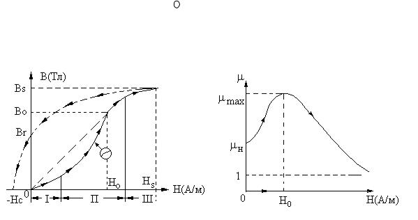 Магнитная проницаемость ферромагнетика может быть определена через максимальные значения Вm и Нm , относящиеся к любой из основных петель гистерезиса (см. рис.), по формуле