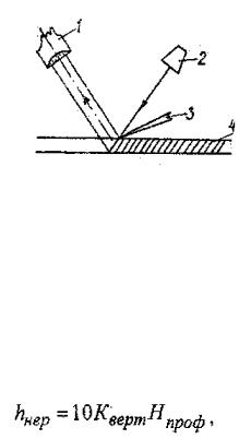 Действие прибора ТСП-4М (рис.2.7) основано на получении профиля поверхности методом теневого сечения поверхности пучком параллельных лучей, выходящих из осветителя 2 и падающих на нож 3, лезвие которого свободно лежит на исследуемой поверхности 4, опираясь на наибольшую неровность. Величина профиля неровности (тень), рассматриваемого через окулярный тубус 1 прибора, измеряется с помощью винтового микрометра. Затем вычисляется высота неровностей hнер по формуле: