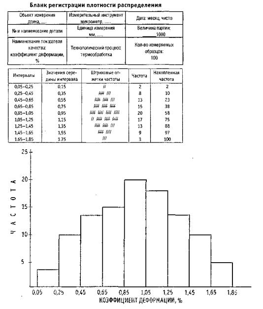 Хотя гистограмма позволяет распознать состояние качества партии изделий по внешнему виду распределения, она не дает всей информации о величине широты, симметрии между правой и левой сторонами распределения, наличии или отсутствии центра распределения в количественном выражении.