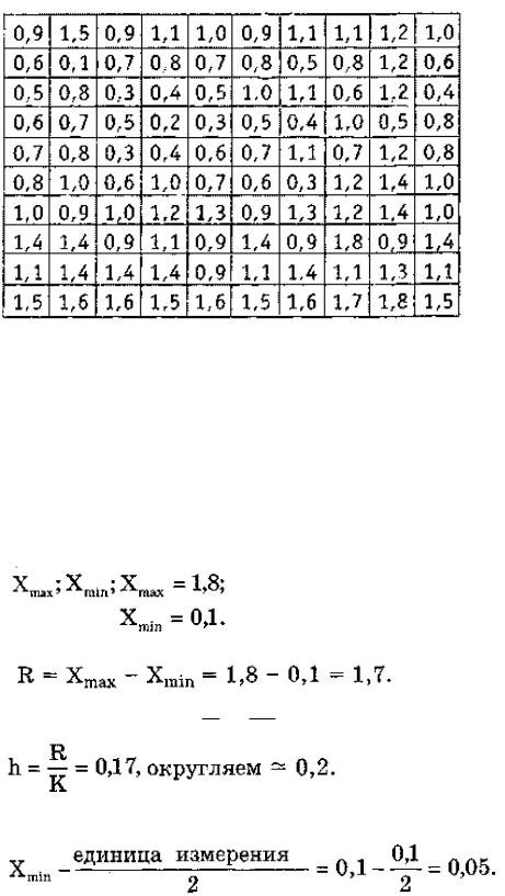 Например, нами измерен коэффициент деформации металлического материала в процессе термообработки. По результатам измерений составим табл. 5.5. Однако, рассматривая таблицу, можно понять, что получить достоверную информацию невозможно. Целесообразно упорядочить эти данные. В такой ситуации лучше составить гистограмму.