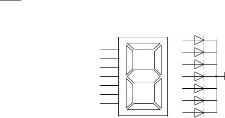 3 У светодиодного семисегментного индикатора (рис.7,а) все диодысегменты подключены катодами к нулевому выводу источника (рис.7,б). На какие выводы анодов надо подать положительное напряжение, чтобы высветить цифры 1, 4, 9 и буквы h, d ?
