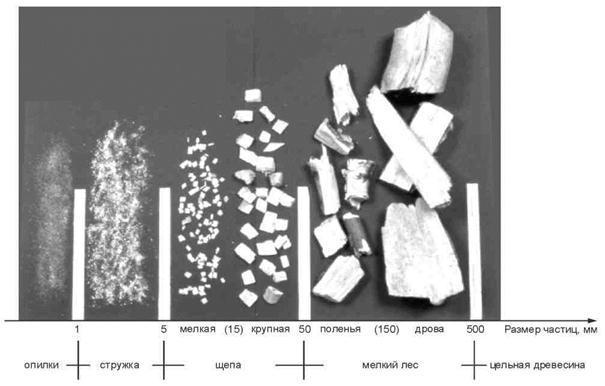 Рисунок 1 - Классификация древесного топлива по размеру частиц